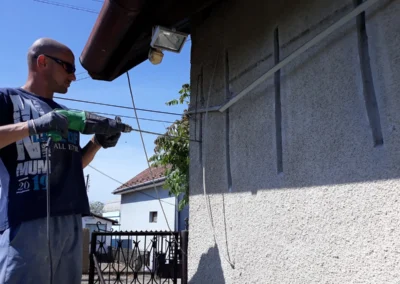 2. Előkészítés: a falba vékony hornyokat vagy furatokat készítünk, amelyekbe a spirálhuzalok kerülnek.